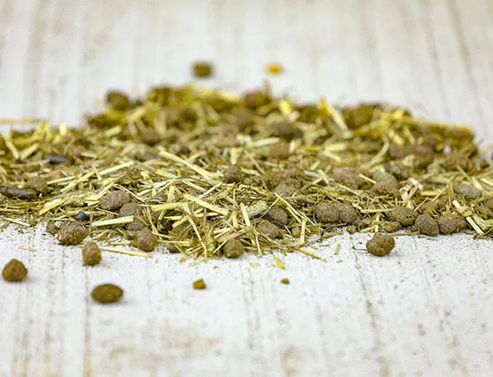 Verdeel het krachtvoer over meerdere porties per dag. Bij voorkeur na het verstrekken van ruwvoer.