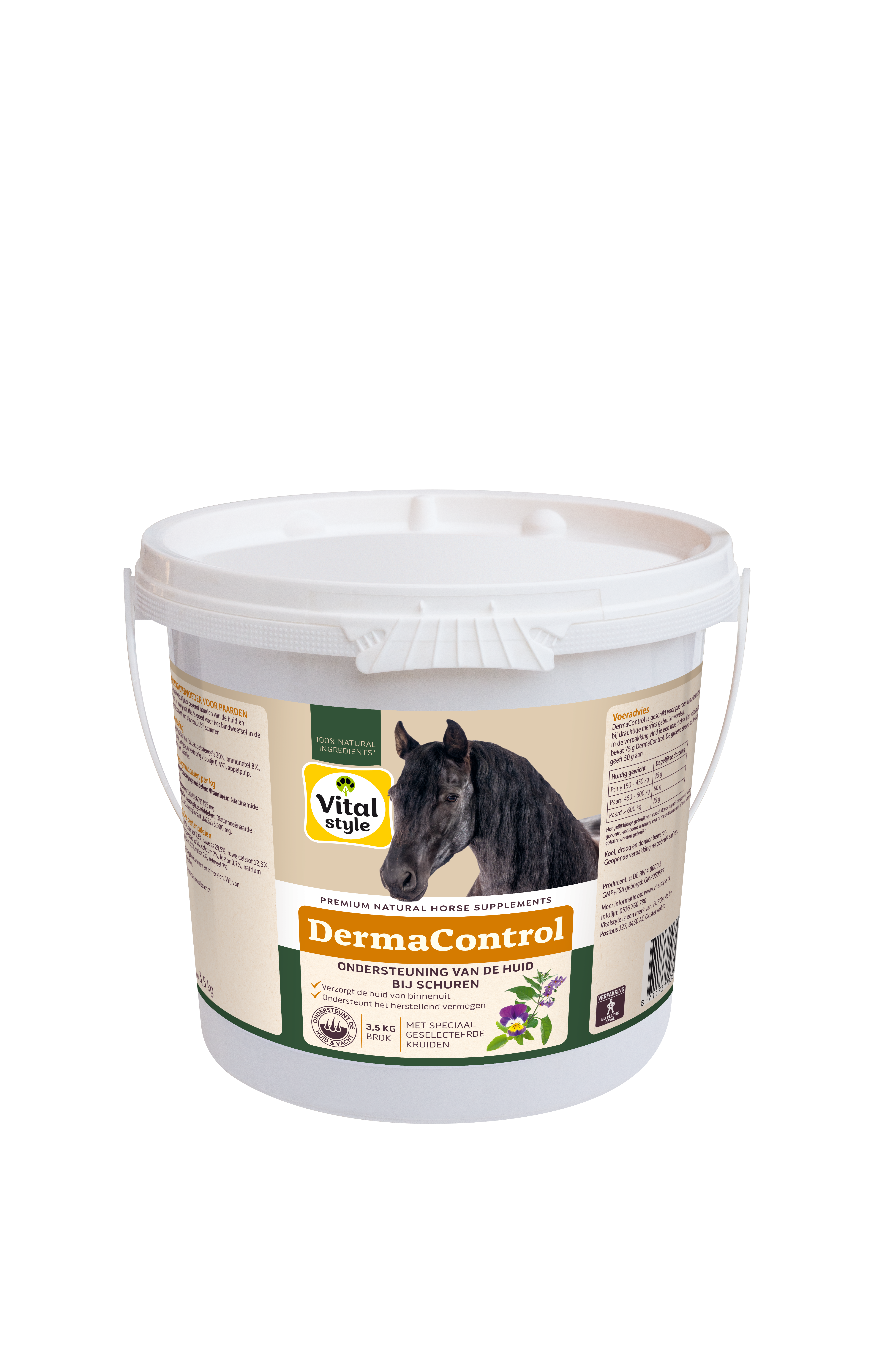 DermaControl is speciaal ontwikkeld voor paarden met een gevoelige huid, bijvoorbeeld door zomerkriebels. DermaControl bevat meerdere krachtige kruiden, zoals brandnetel, heermoes en bitterzoet, die de afvoer van afvalstoffen ondersteunen. Zink en diatomeeënaarde (bron van silicium) spelen een belangrijke rol bij het behoud van sterk bindweefsel van de huid. Met DermaControl pak je zomerkriebels van binnenuit aan. Met DermaControl Lotion verzacht je de huid bij kriebels en ondersteun je een goede haargroei.
