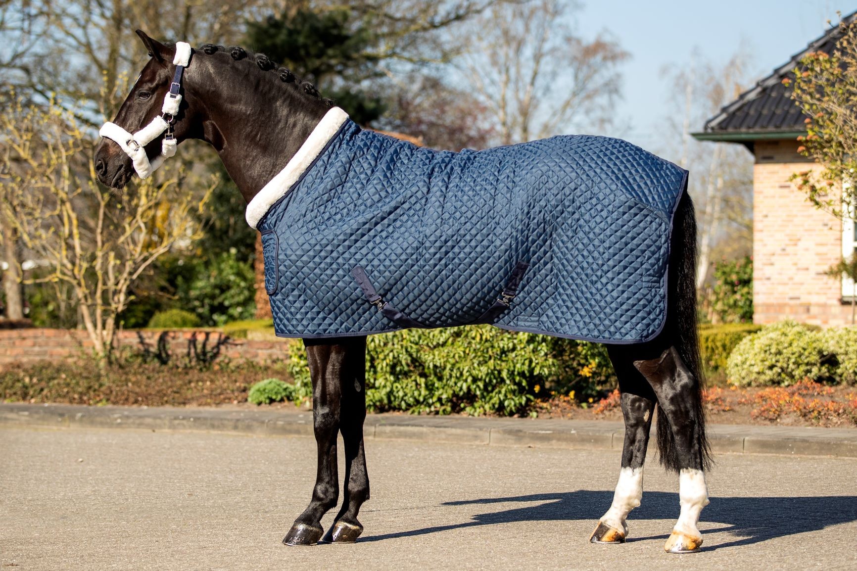 Luxe gewafelde showdeken met teddy bont kraag en 1 voorsluiting, borstflap, kruissingels. De binnenzijde is gevoerd met artificieel konijnenvel voor een ultra zacht