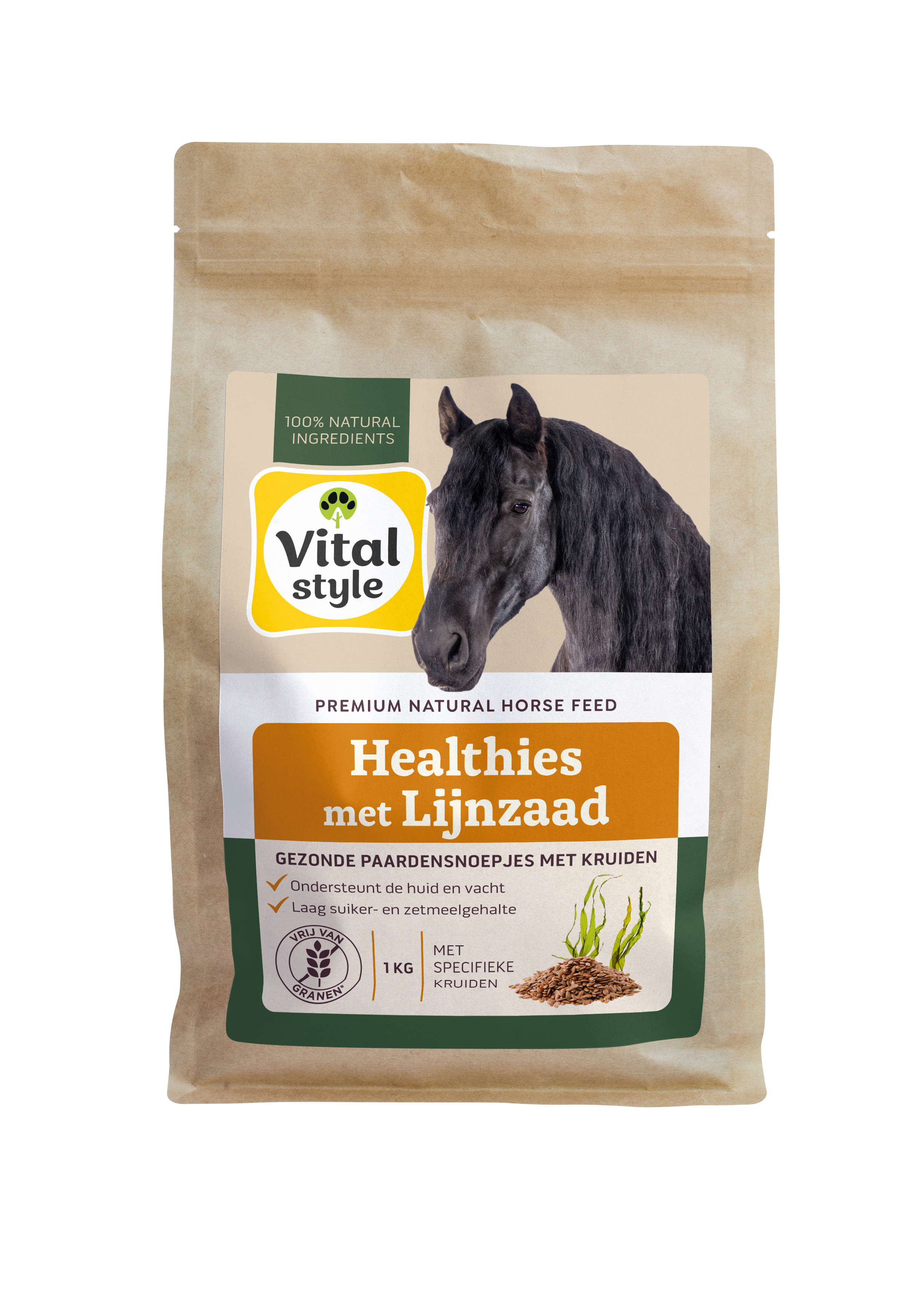 Healthies met Lijnzaad is dé gezonde beloning voor paarden en pony’s. Dankzij de graanvrije receptuur, het lage suiker- en zetmeelgehalte en de toevoeging van specifieke kruiden zijn de paardensnoepjes geschikt voor iedere paard of pony. De kruiden in Healthies met Lijnzaad zijn speciaal ter ondersteuning van de huid en vacht.