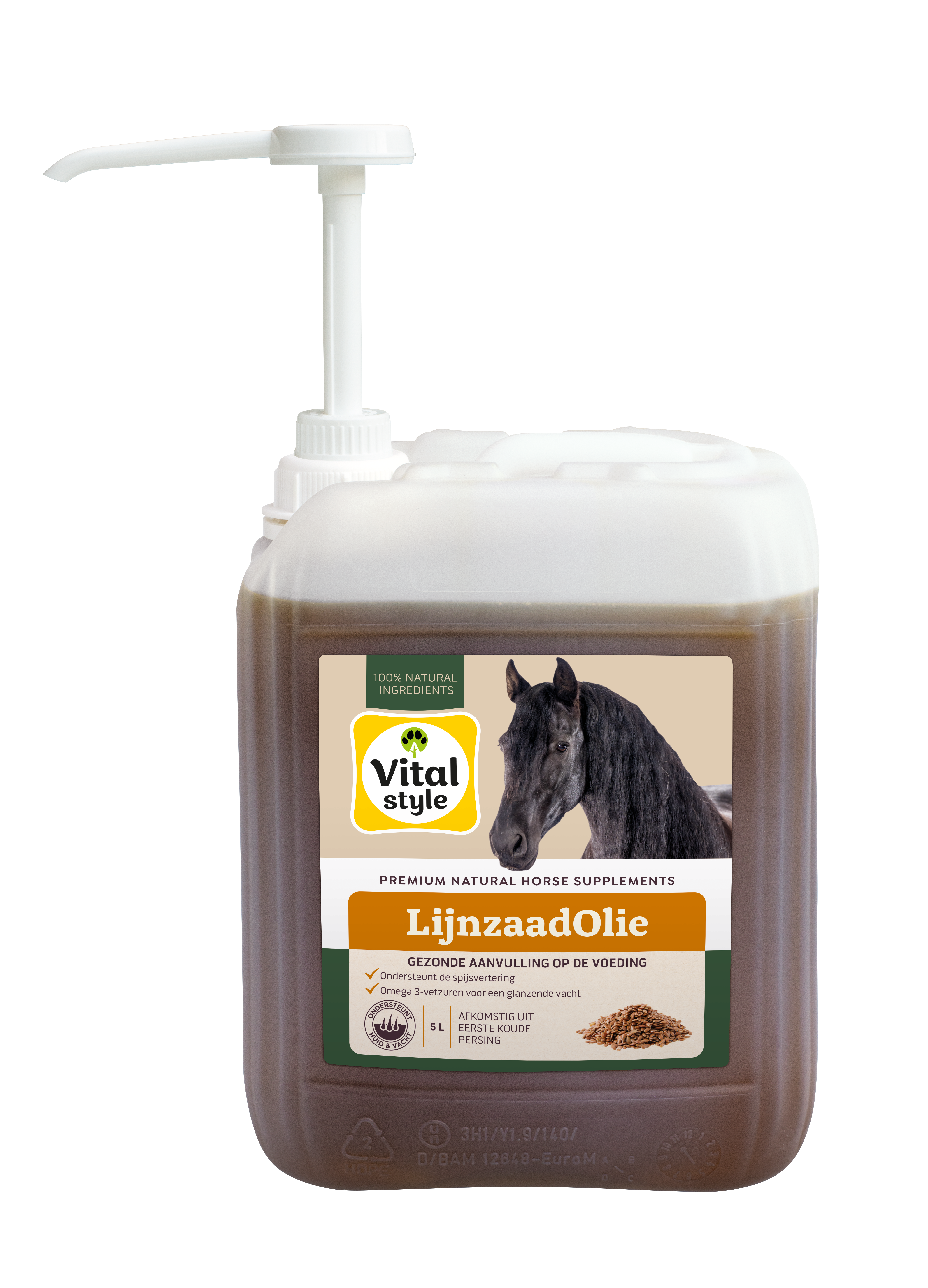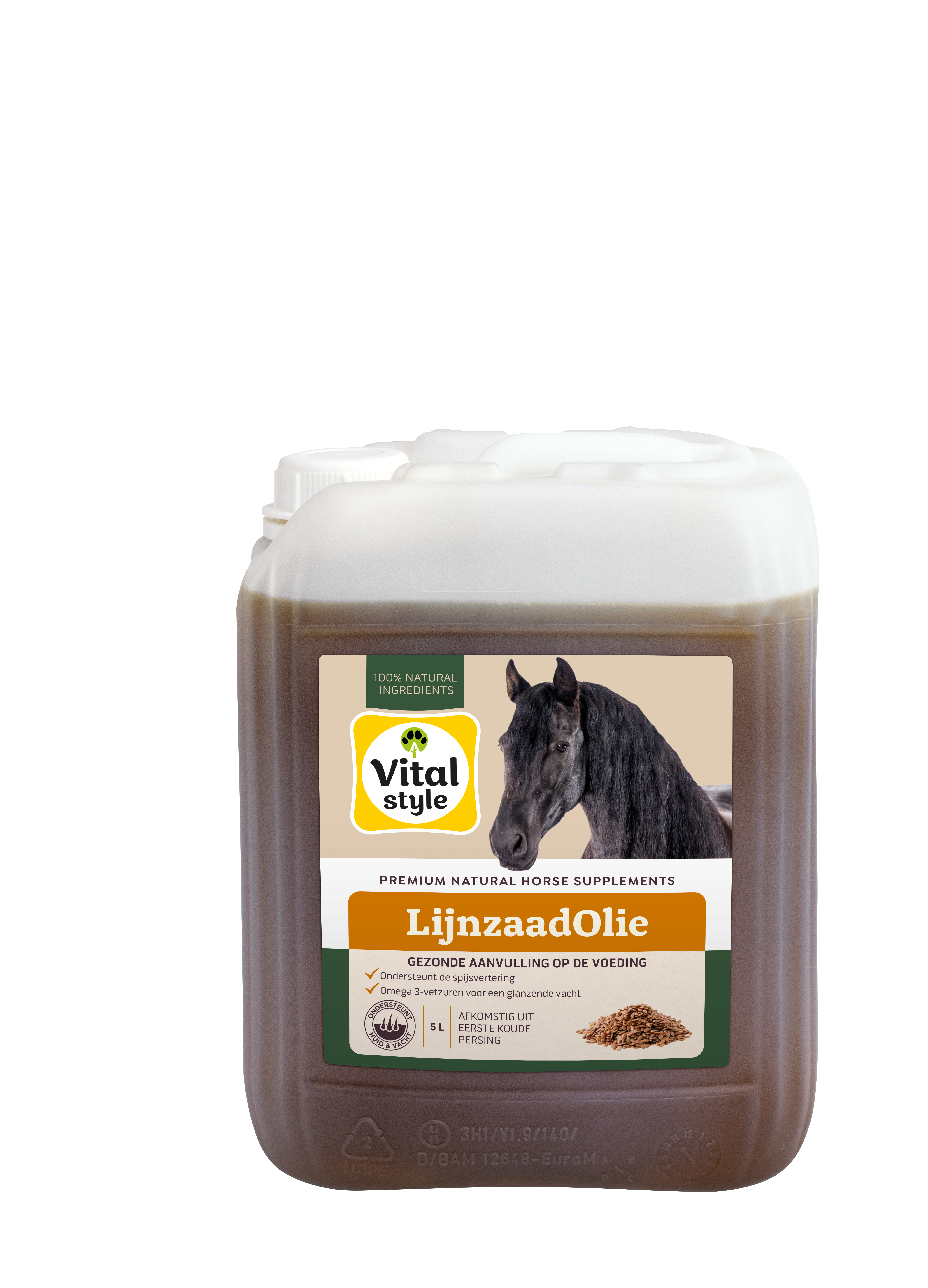Wil je je paard een lekkere en gezonde aanvulling geven? Dan is VITALstyle LijnzaadOlie ideaal! Dit stimuleert niet alleen een prachtige glanzende vacht, maar ondersteunt ook de spijsvertering en bevat de juiste verhouding Omega 3-6-9 vetzuren.