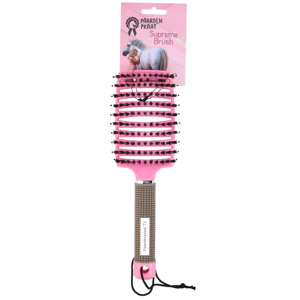 De Paardenpraat TV Supreme Borstel verwijdert moeiteloos alle klitten uit staart en manen, én voorkomt gespleten haarpunten.