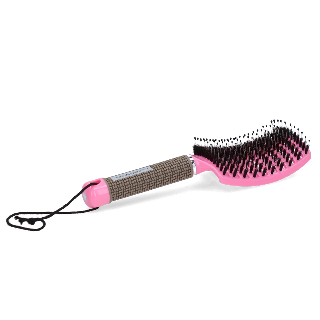 De combinatie van varkensharen en flexibele pinnen met zachte soft-top zorgt ervoor dat de borstel moeiteloos door het haar gehaald kan worden, zonder haren uit te trekken.