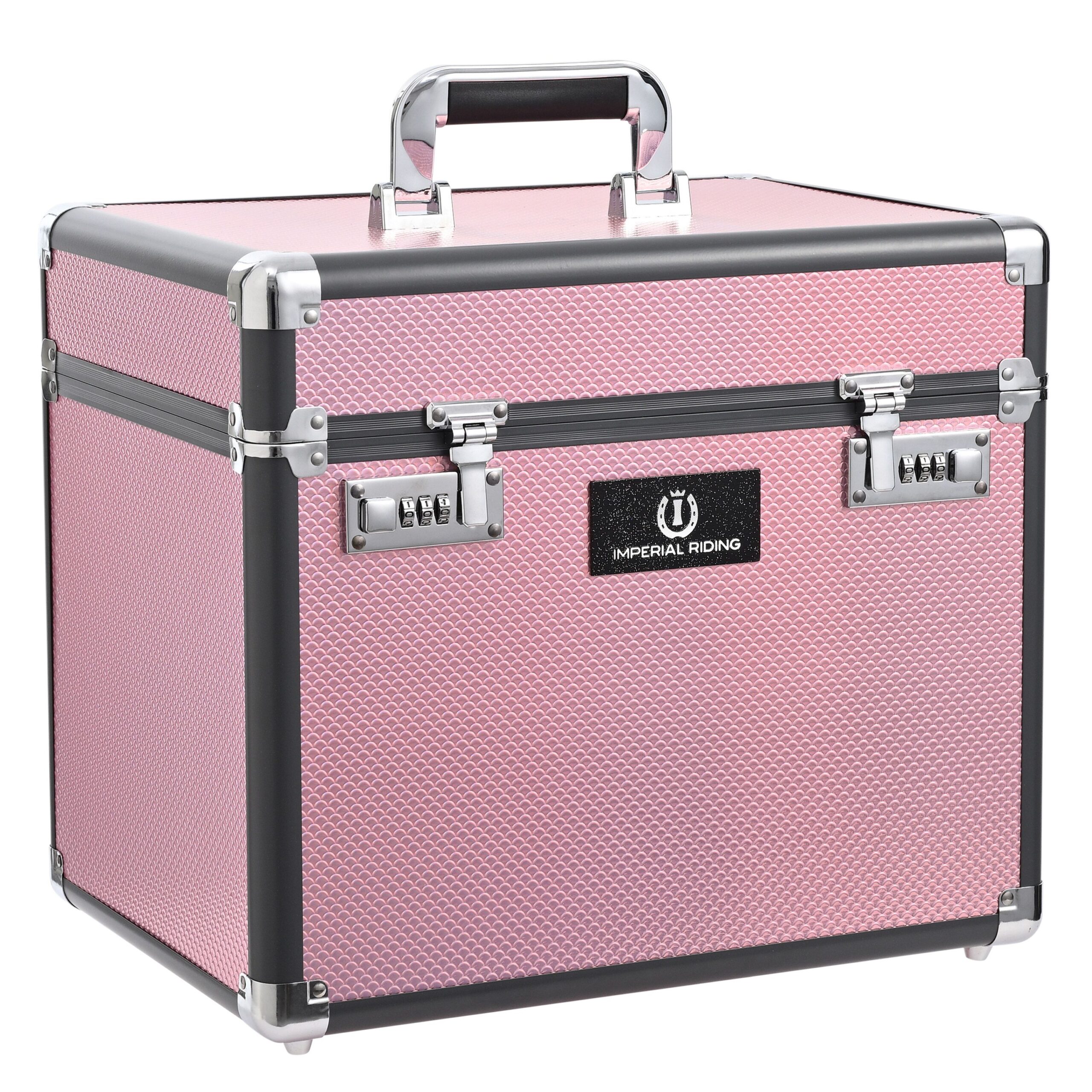 Alleen het beste voor je paard en zijn verzorging – onze bestseller Grooming Box Shiny is de perfecte poetsbox om al je verzorgingsspullen en accessoires in op te bergen. De inlay van deze box is gemaakt van een zacht materiaal om je waardevolle spullen te beschermen en de space dividers kunnen worden aangepast om je spullen mooi te organiseren. Een kleinere inlay bevat vakken voor bijvoorbeeld lekkernijen en haarelastiekjes en met de spiegel in de deksel kun je snel nog even je stijl controleren voordat je vertrekt voor je rit. Om het allemaal veilig te houden kan de Shiny Grooming Box worden afgesloten met twee cijfersloten. Deze sterke, duurzame en gemakkelijk te reinigen poetsbox zal er altijd zijn om je te helpen tijdens je dagelijkse training, competitie en al je andere avonturen in de stallen. Afmetingen (LxBxH): 38x28x32 cm.