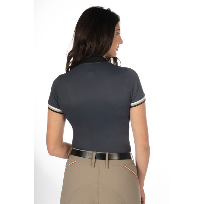 - Met het Amalfi poloshirt presenteert het merk Lauria Garrelli een exclusief en stijlvol shirt voor veeleisende vrouwelijke rijders. Het ademende materiaal maakt het comfortabel om te dragen, terwijl de op maat gemaakte snit de figuur op een flatterende manier benadrukt. De sportieve polokraag geeft het shirt een klassieke uitstraling, terwijl de elegante manchetten in een contrasterende kleur het een verfijnde look geven. Een speciaal hoogtepunt is de kleine rits in elegant zwart, die naar behoefte kan worden geopend voor extra luchtcirculatie. Dankzij het elastaan-gehalte biedt het shirt een optimale pasvorm en bewegingsvrijheid – perfect voor het rijden en een stijlvolle dagelijkse look.