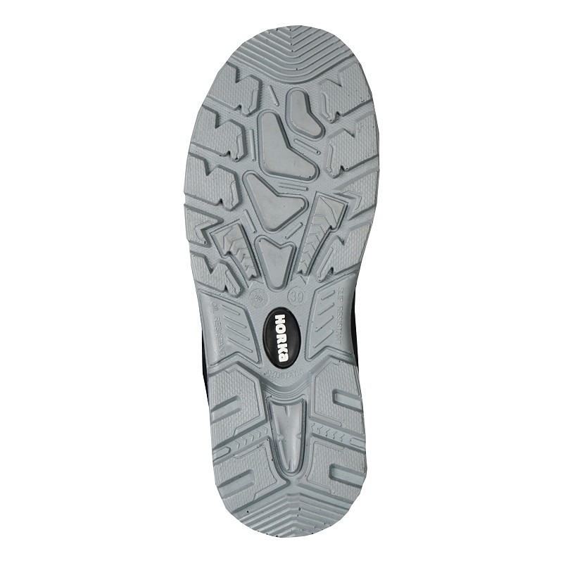 Veiligheidsschoen Viborg is een hoge veiligheidsschoen met veters en reflecterende delen voor meer zichtbaarheid. De schoen beschikt over een ademende binnenvoering en een stalen neus welke bescherming biedt tot 200 Joule. Productspecificaties: – Reflecterende delen voor meer zichtbaarheid – Stalen neus; bescherming tot 200 Joule – Ademende binnenvoering – PU/PU zool met antislip – EN S3 SRC normering Materiaal: Schacht: Crazy Horse leer (1.8 / 2.0 mm) Voering: Grijze Cambrille Boord: Tetron Vamp voering: Non-woven Zool: PU/PU; antislip |
