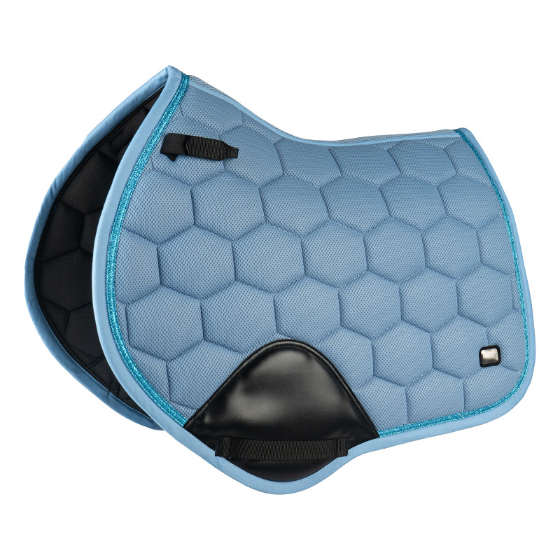 Sportief spring- en veelzijdigheidsdekje van mesh materiaal, afgewerkt met tonal glitterdetails voor een luxe uitstraling. De ergonomische vorm met hoge schoft zorgt voor een fijne pasvorm.